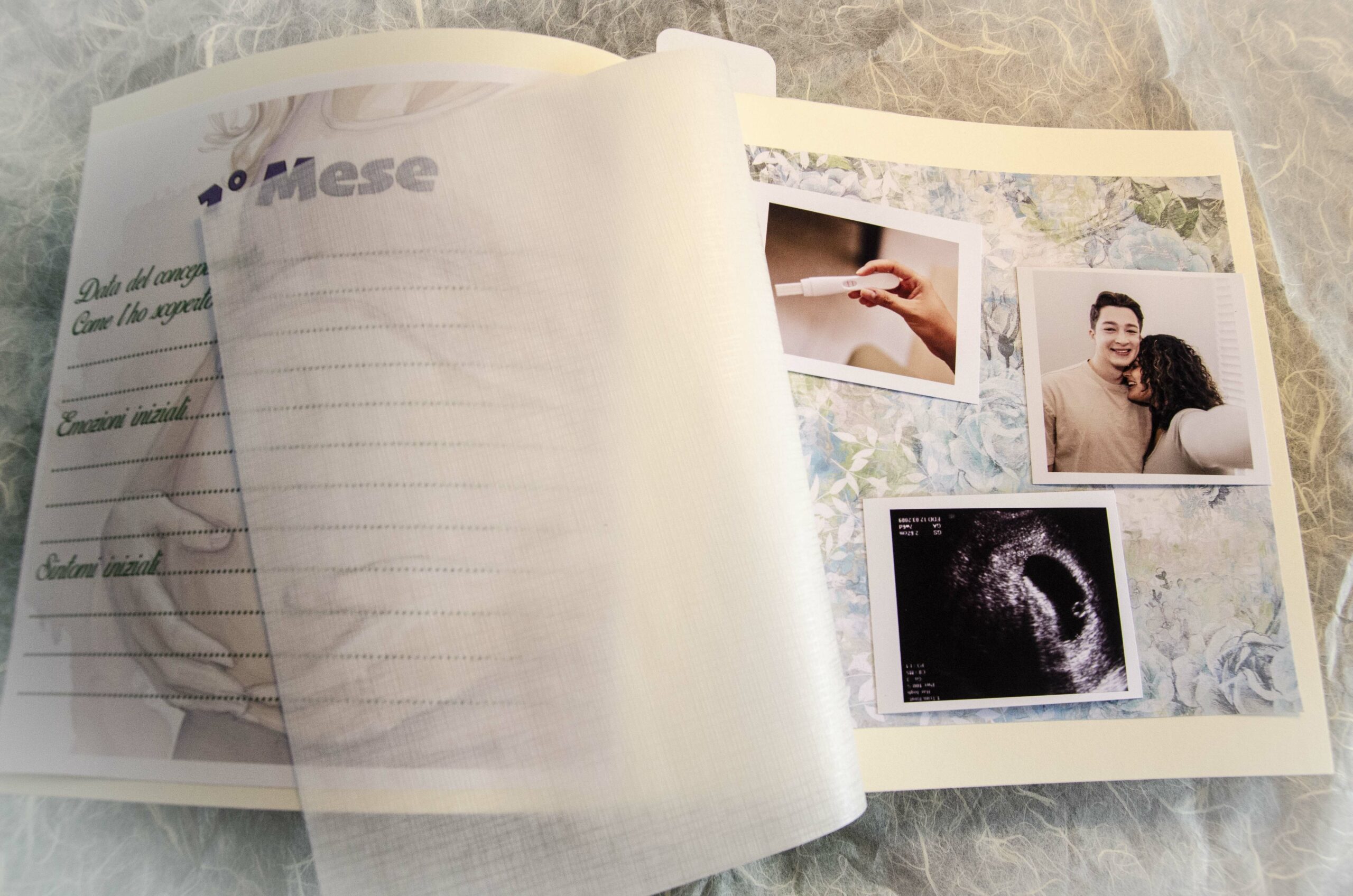 Album fotografico gravidanza personalizzato realizzato a mano con 9 pagine interne da compilare per ogni mese di gestazione